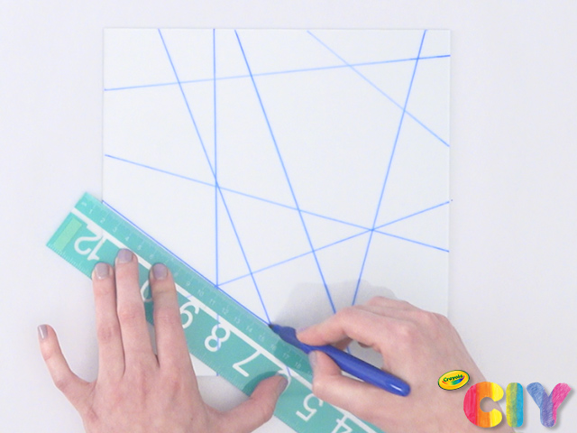 Use a ruler to draw an abstract grid pattern onto the glass using markers.
